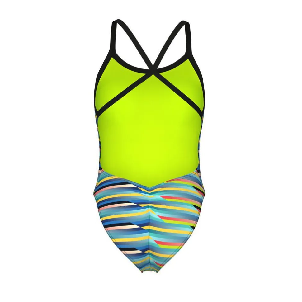 Fashion, function and sustainability, all in one! Enjoy the water in this extremely durable, chlorine-proof, and eye-catching arena Racing Stripe Xcriss Cross for women from the arena Performance line. This stylish swimsuit is ideal for both competitive and regular swimmers who swim frequently in the pool.
